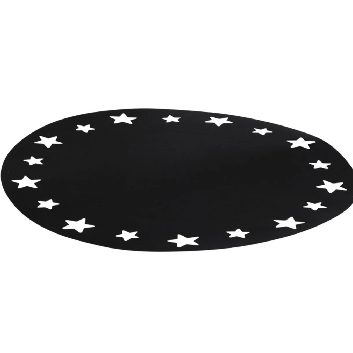 Lot de 4 sous-assiettes en carton noir à motif étoile ajouré, pour habiller votre table d’une touche festive pour Noël.