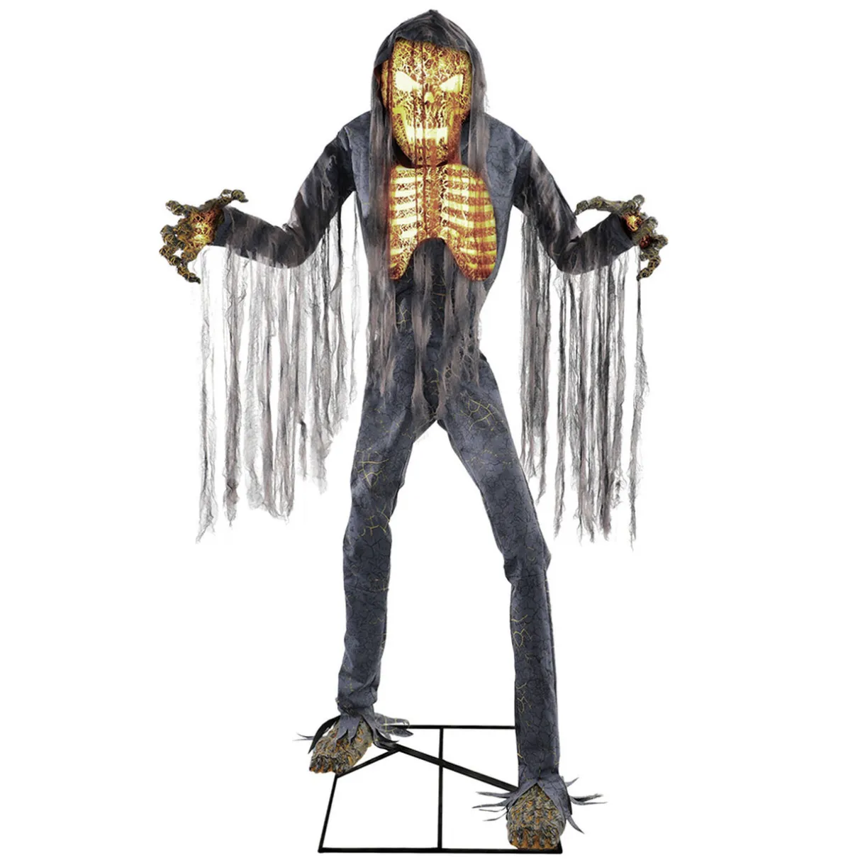 Disposez ce squelette-goule géant animé et sonore dans votre maison ou sur le pas de votre porte pour effrayer vos invités et les chasseurs de bonbons.
