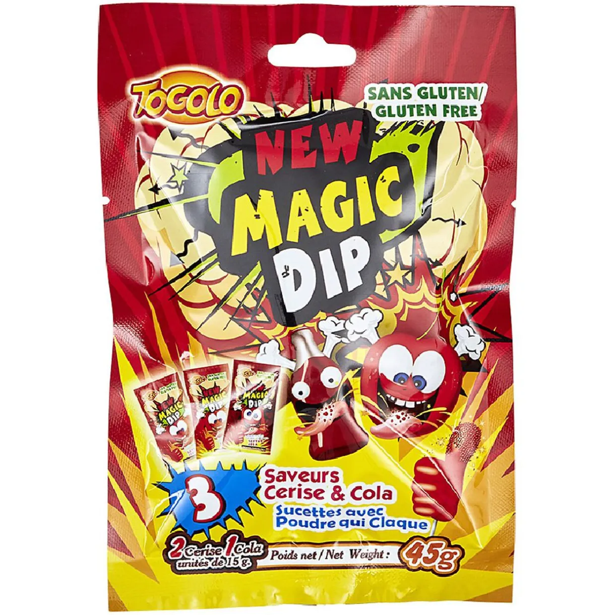 Assortiment de 3 sucettes pétillantesMagic Dip saveur Cerise et Cola.