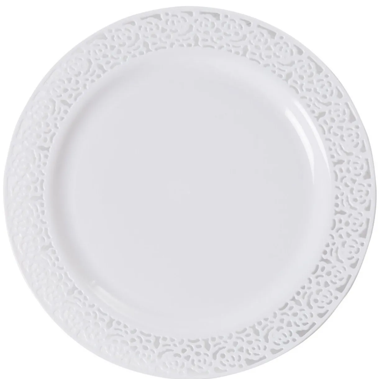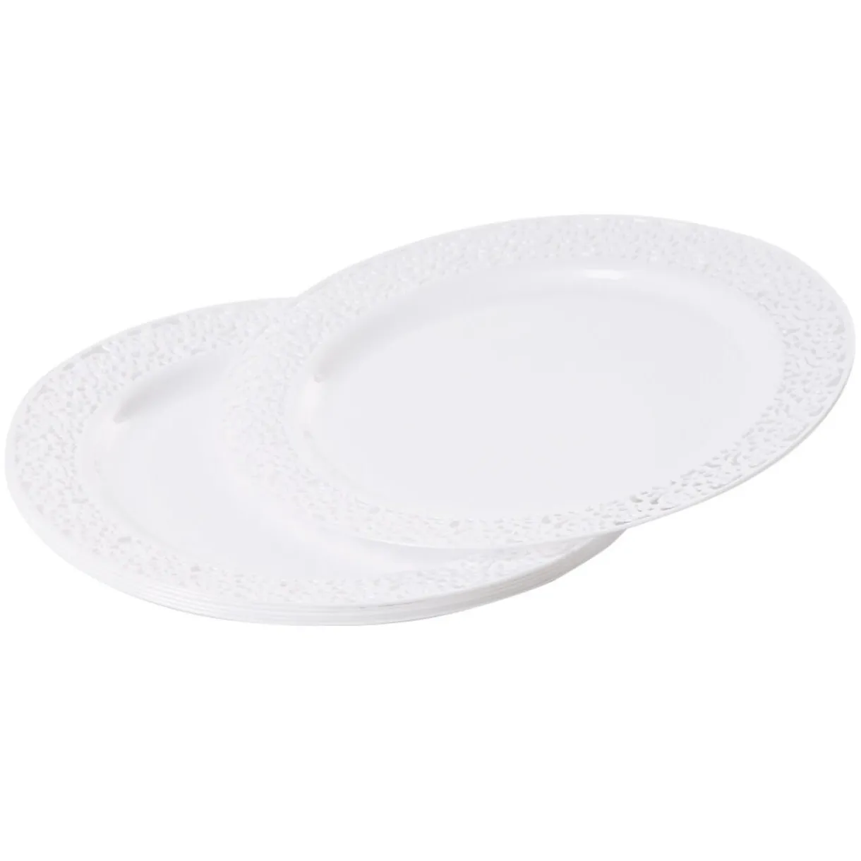 Lot de 6 assiettes plates blanches avec contour décoré de motifs en relief, collection Inspiration.