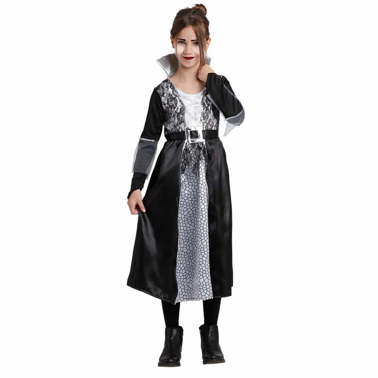Déguisement fille vampire robe noire et blanche. Idéal comme costume d’Halloween !