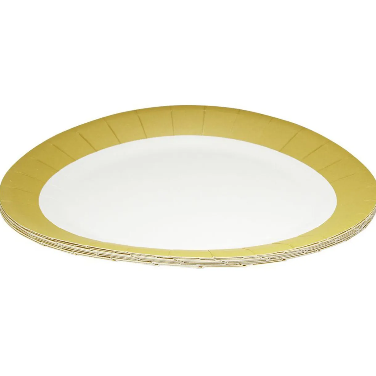Lot de 10 assiettes rondes en carton blanc à bord doré pour servir vos repas de fête !