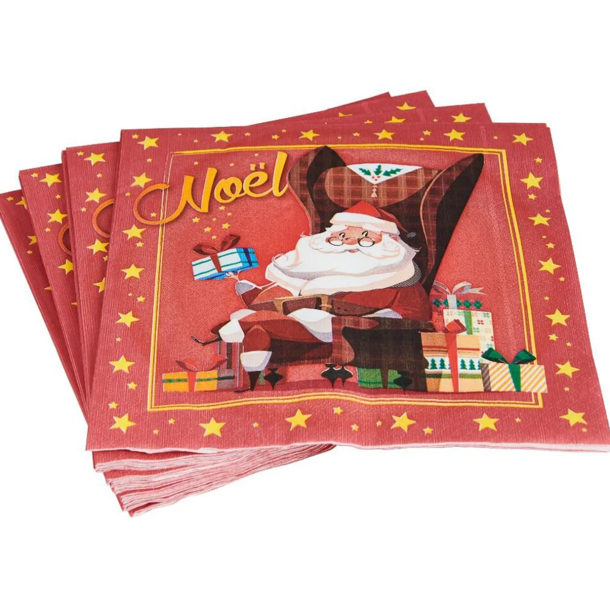 Lot de 20 serviettes en papier à motif père Noël, pour compléter la décoration de votre table de réveillon.