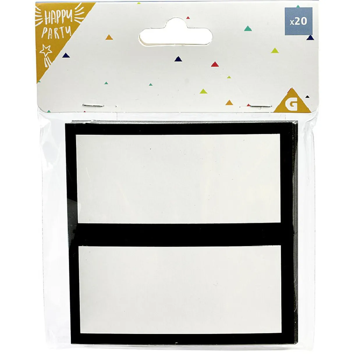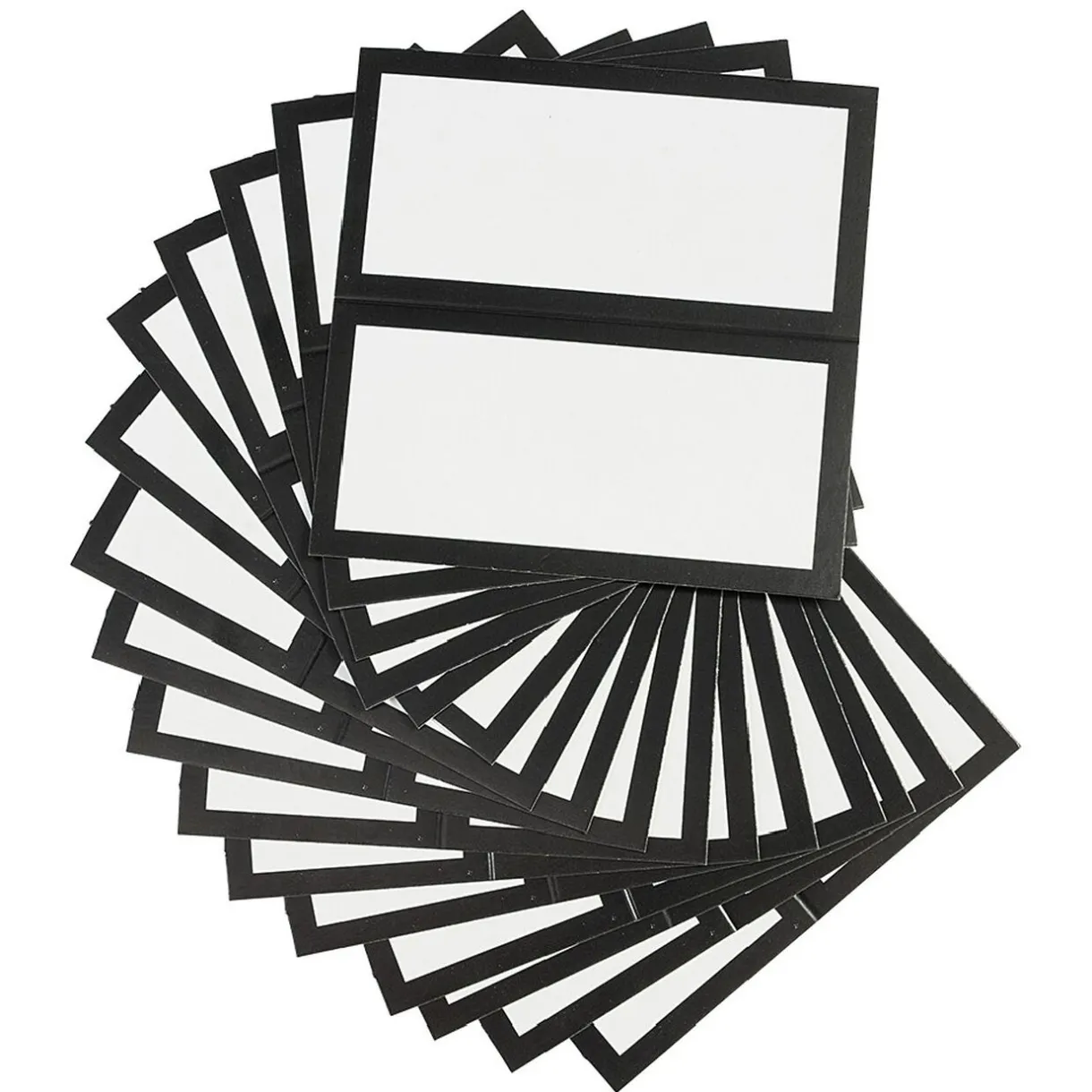 Lot de 20 chevalets marque-place en papier blanc à bord noir.