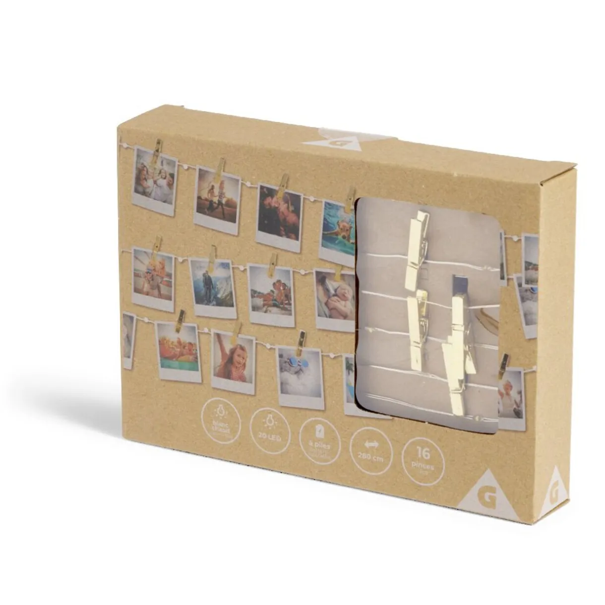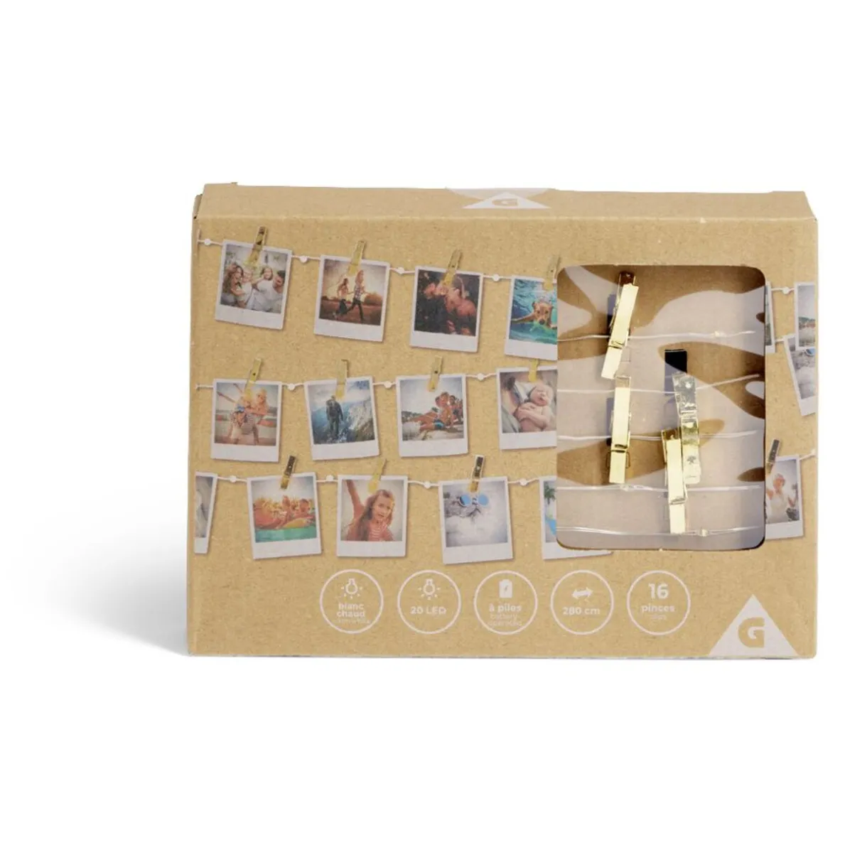 Cette guirlande lumineuse à pinces dorées est l’accessoire parfait pour afficher vos souvenirs préférés avec style.