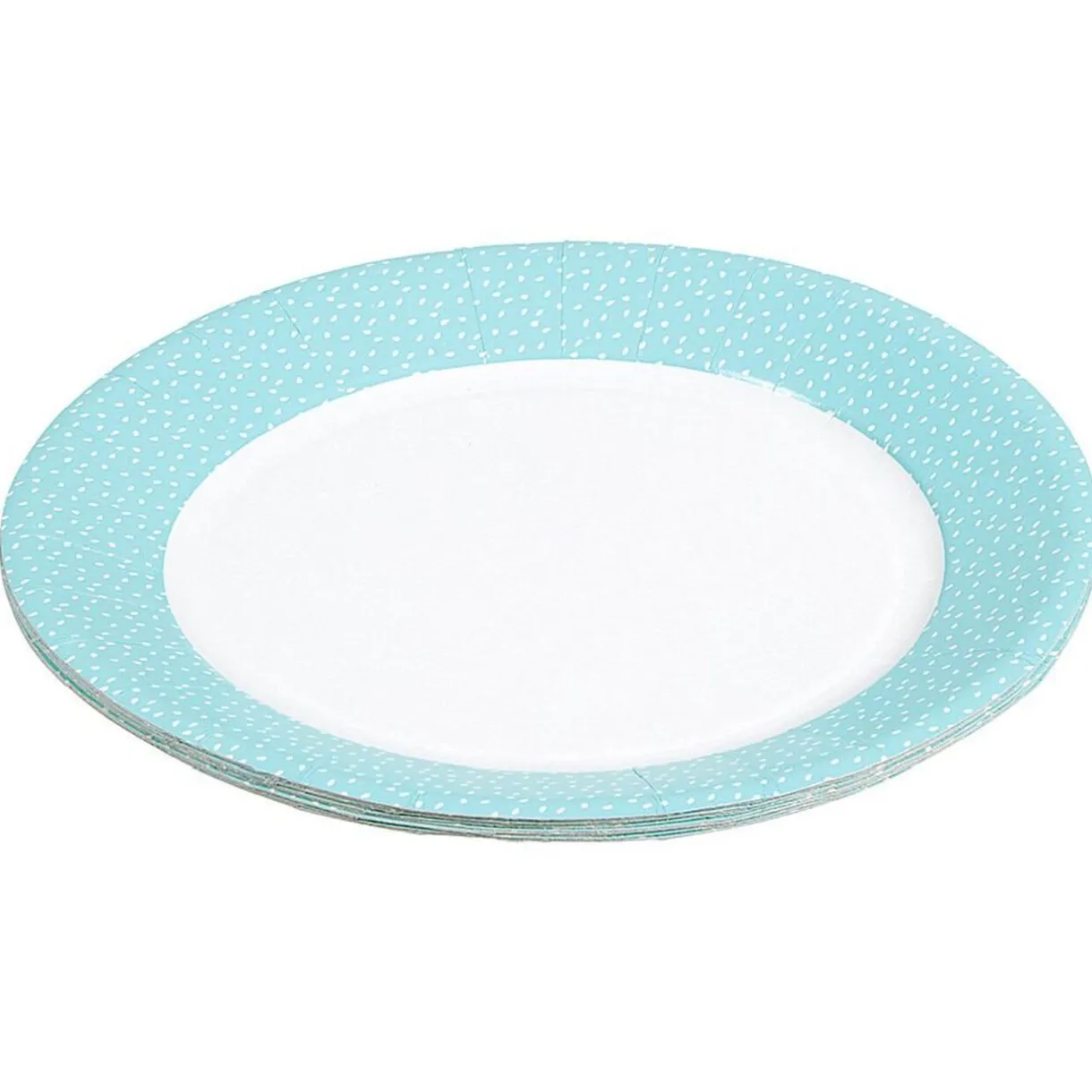 Lot de 10 assiettes en carton bleu au motif confettis blanc.