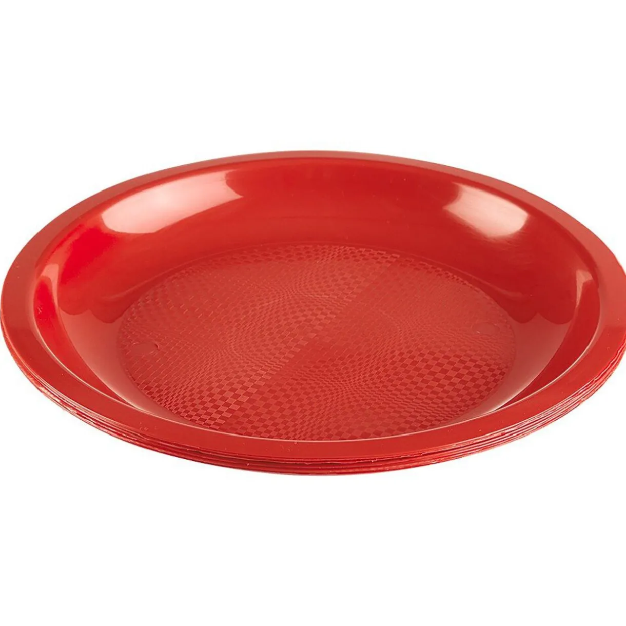 Lot de 6 assiettes en plastique au coloris rouge de 22 cm de diamètre.