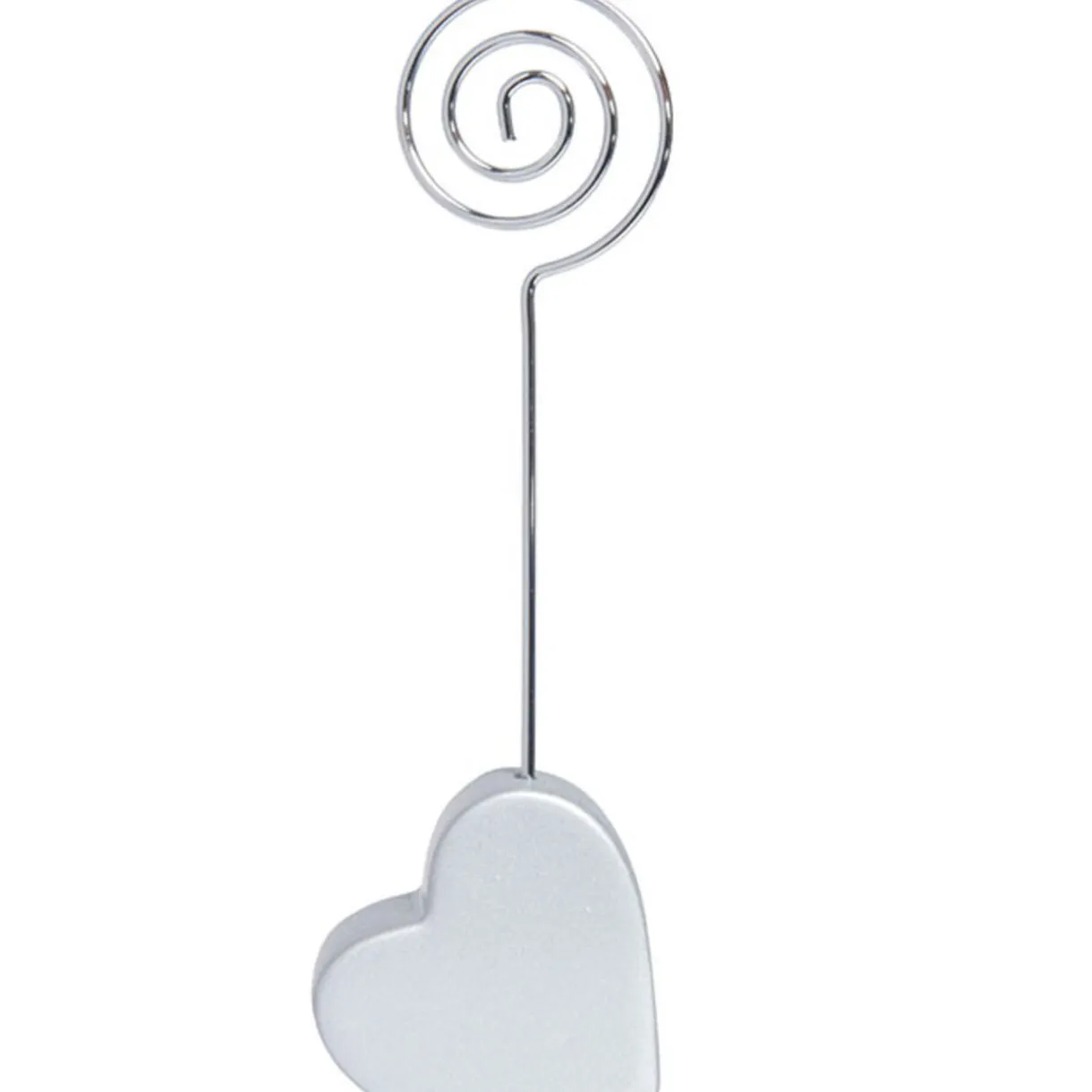 Marque place mariage en forme de coeur argenté, dim. h.13×4 cm, résine et métal.