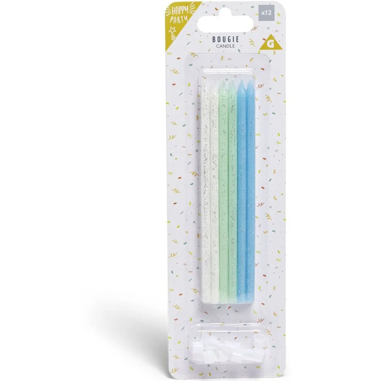 Illuminez vos célébrations avec ce lot de 12 bougies longues de coloris bleus, verts et blancs.