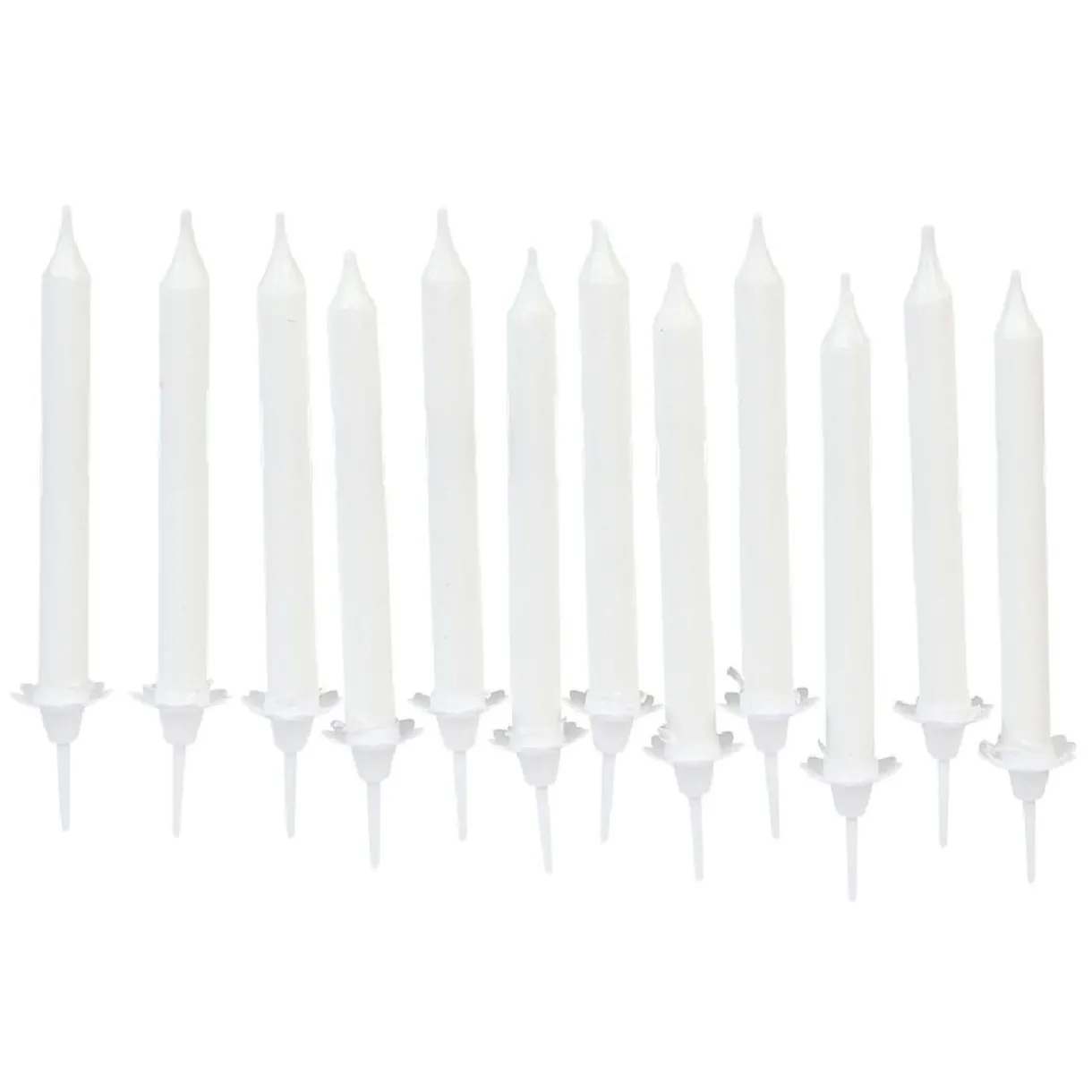 Lot de 12 bougies anniversaire et support blanc x 12.
