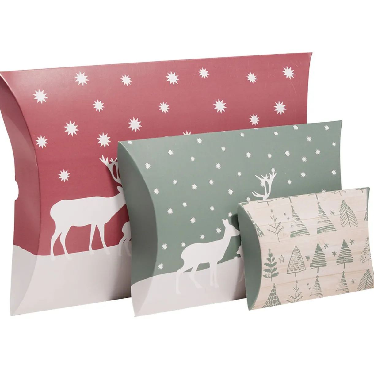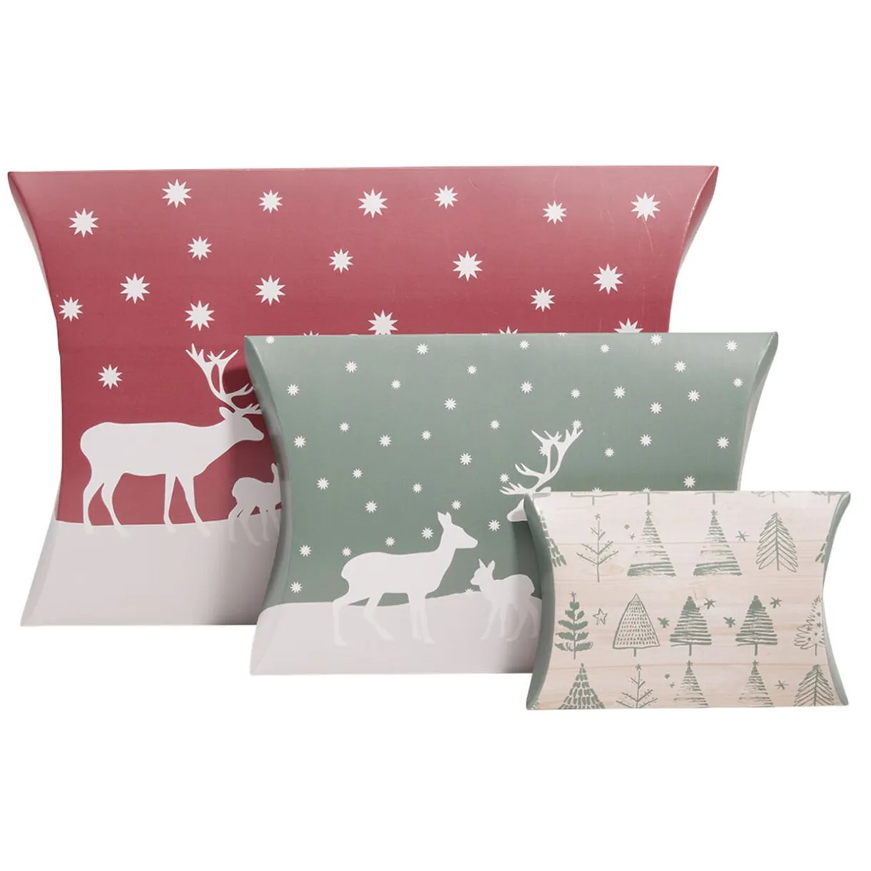 Lot de 3 boîtes à cadeau en papier recyclé certifié FSC de tailles différentes.