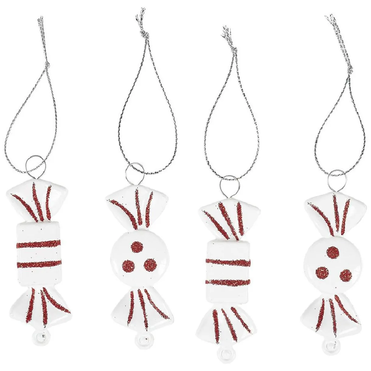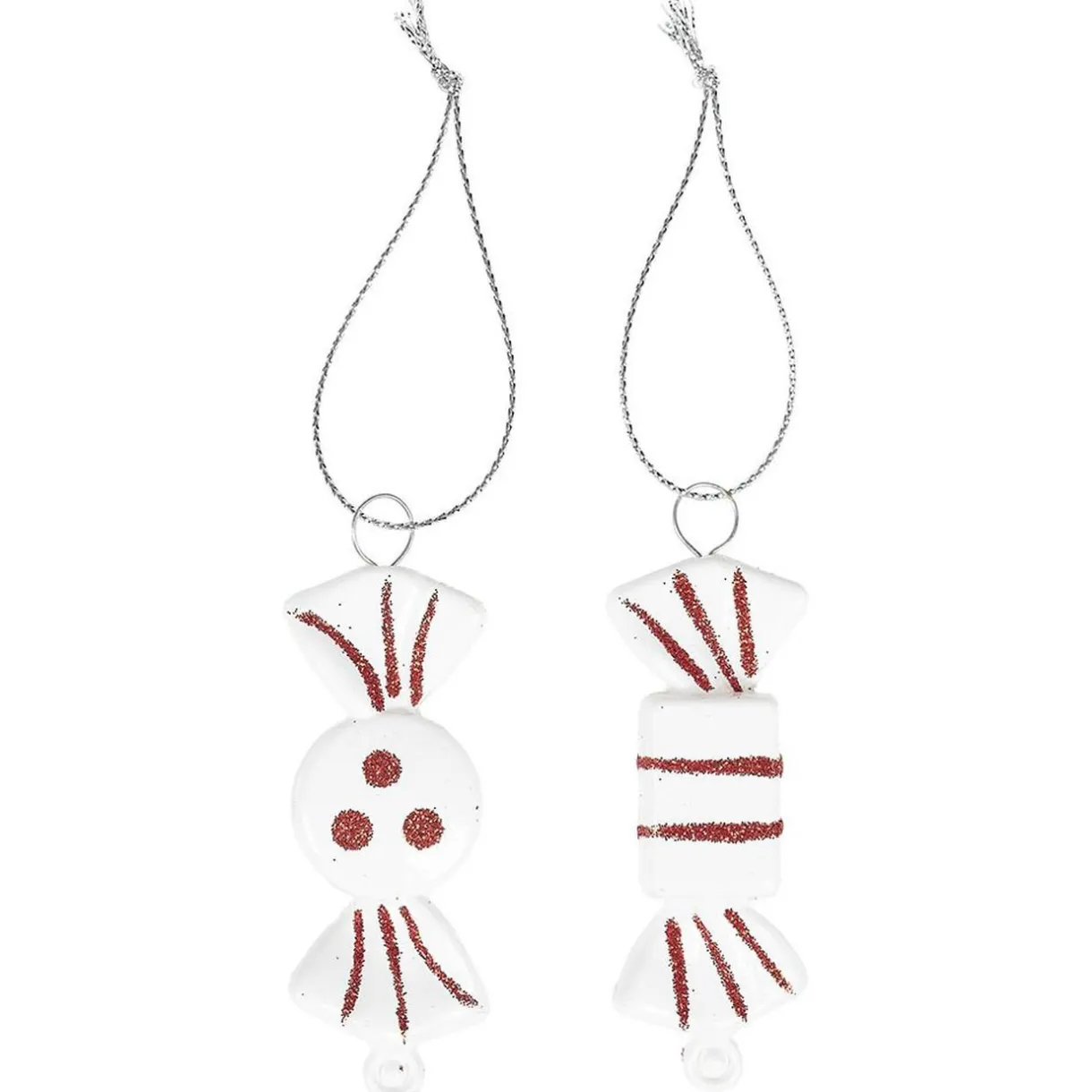 Lot de 9 petits bonbons rouges et blancs à suspendre au sapin pour fêter Noël avec une teinte traditionnelle.
