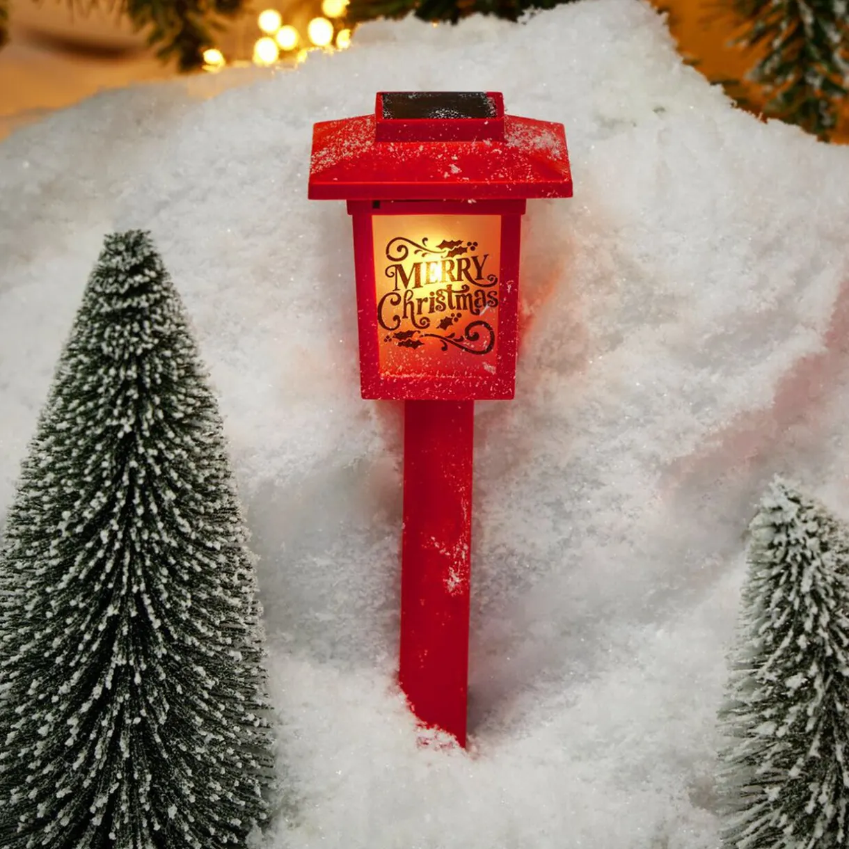 Facile à installer, ajoutez cette jolie borne solaire design lanterne de Noël dans votre extérieur pour créer un décor lumineux et festif pour la fin d’année.