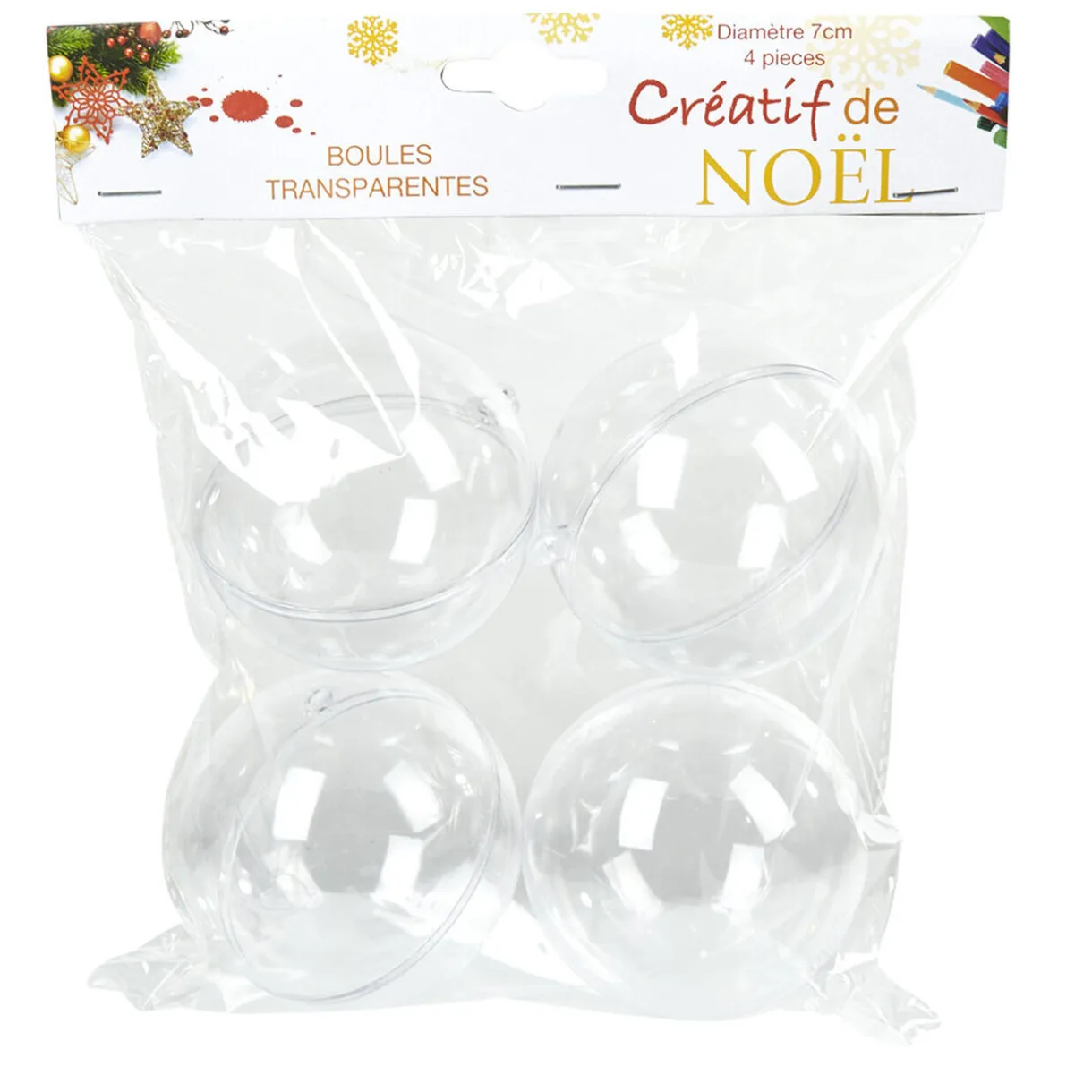 Boule création de Noël x4 en plastique à décorer. Dim : Ø 7 cm