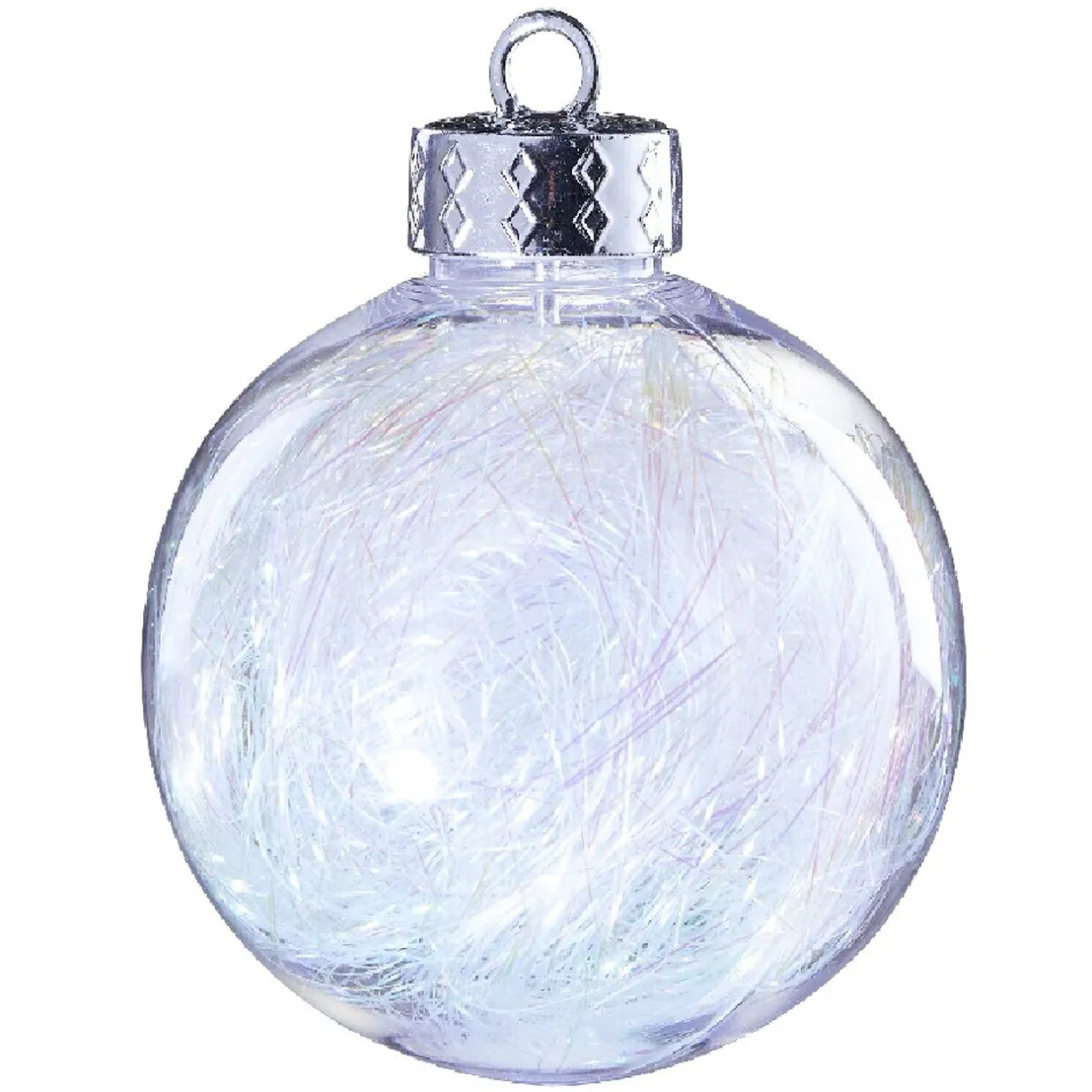 Lot de 15 boules de Noël à suspendre, de forme ronde avec intérieur décoré par des fils métallisés argentés, dorés, blancs et rouges. Idéales pour apporter une touche brillante et chic à votre sapin !