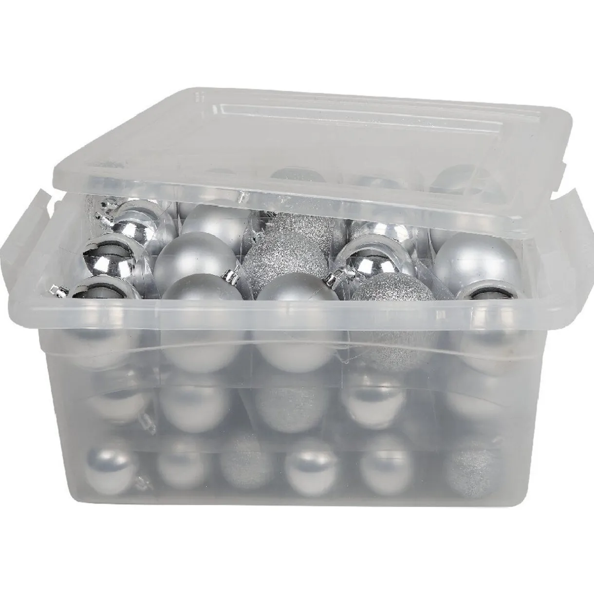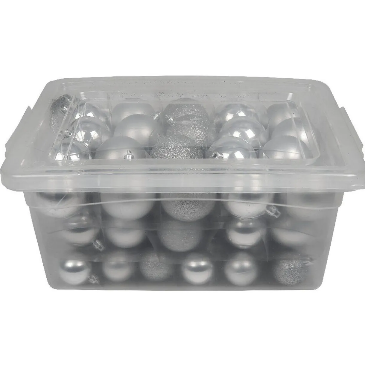 Ces 70 boules de Noël de couleur argenté avec finition pailletée, mate ou brillante trouveront leur place sur votre sapin de Noël.