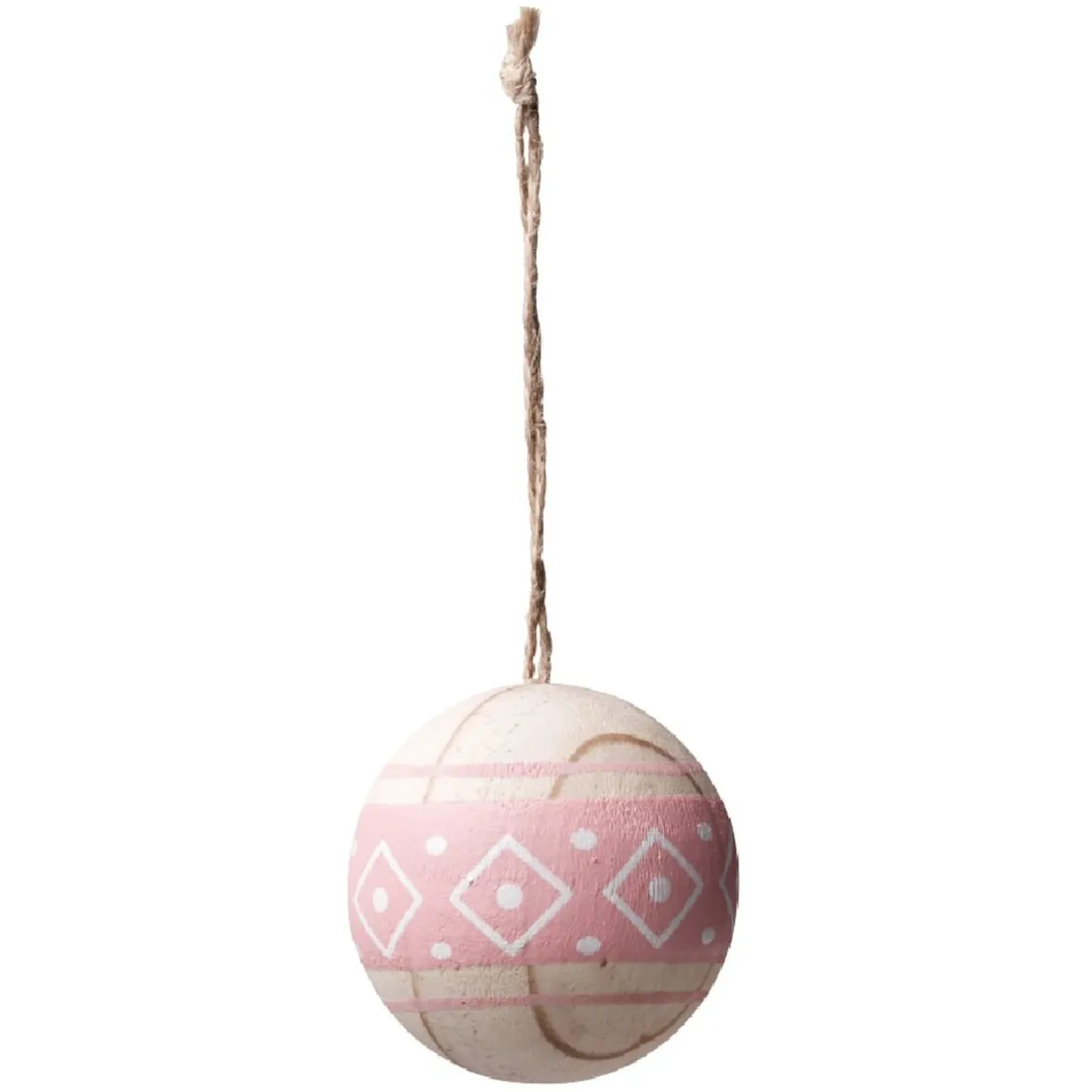 Boule de Noël en bois décoré dans l’esprit ethnique.br>Ce produit existe en 4 modèles, modèle aléatoire selon disponibilité en magasin.