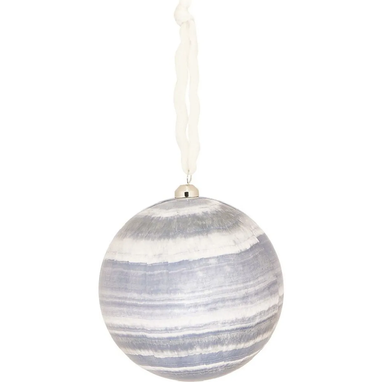 Décorez votre sapin avec cette jolie boule de Noël en mousse recouverte d’un papier plastifié avec imprimé boréal bleu.