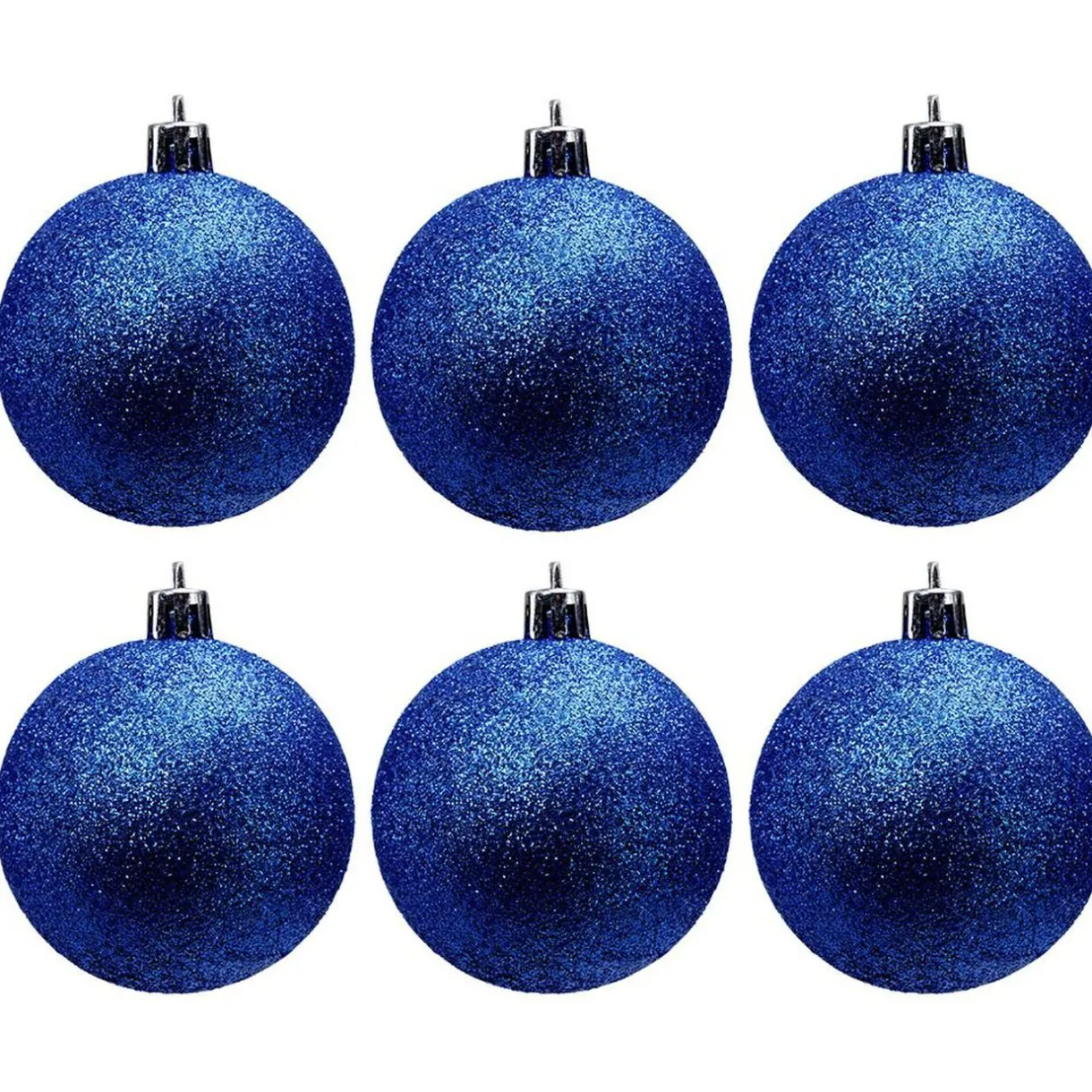 Lot de 6 boules de Noël pailletées bleues à accrocher sur le sapin et partout ailleurs durant les fêtes.