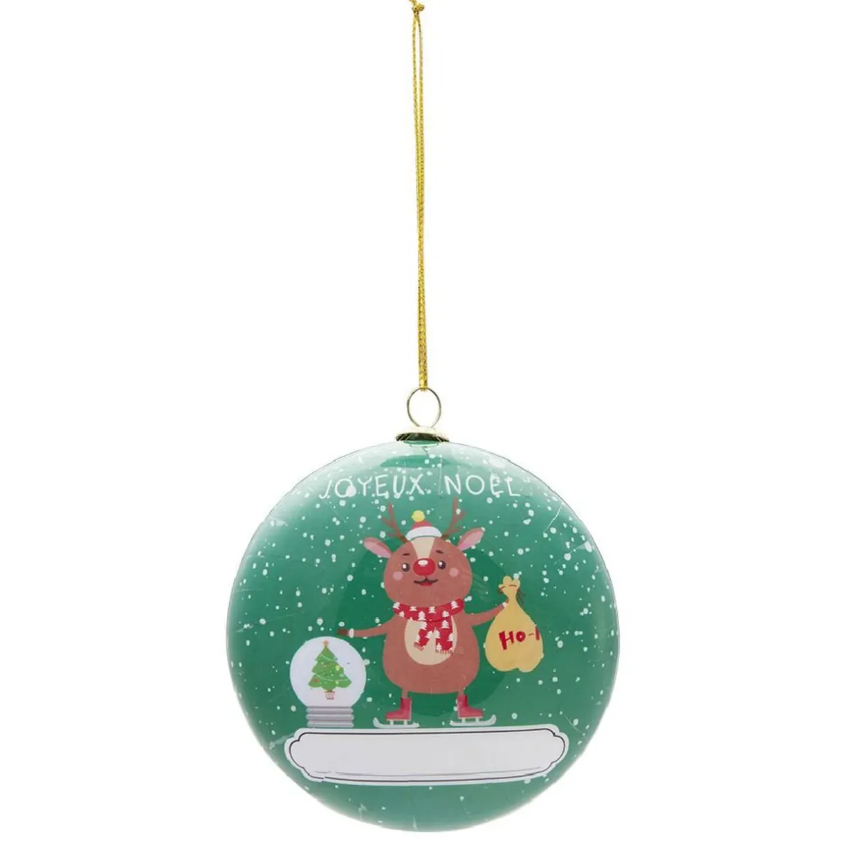 Existe en bleu avec un père Noël, en vert avec un renne ou en rouge avec un elfe.