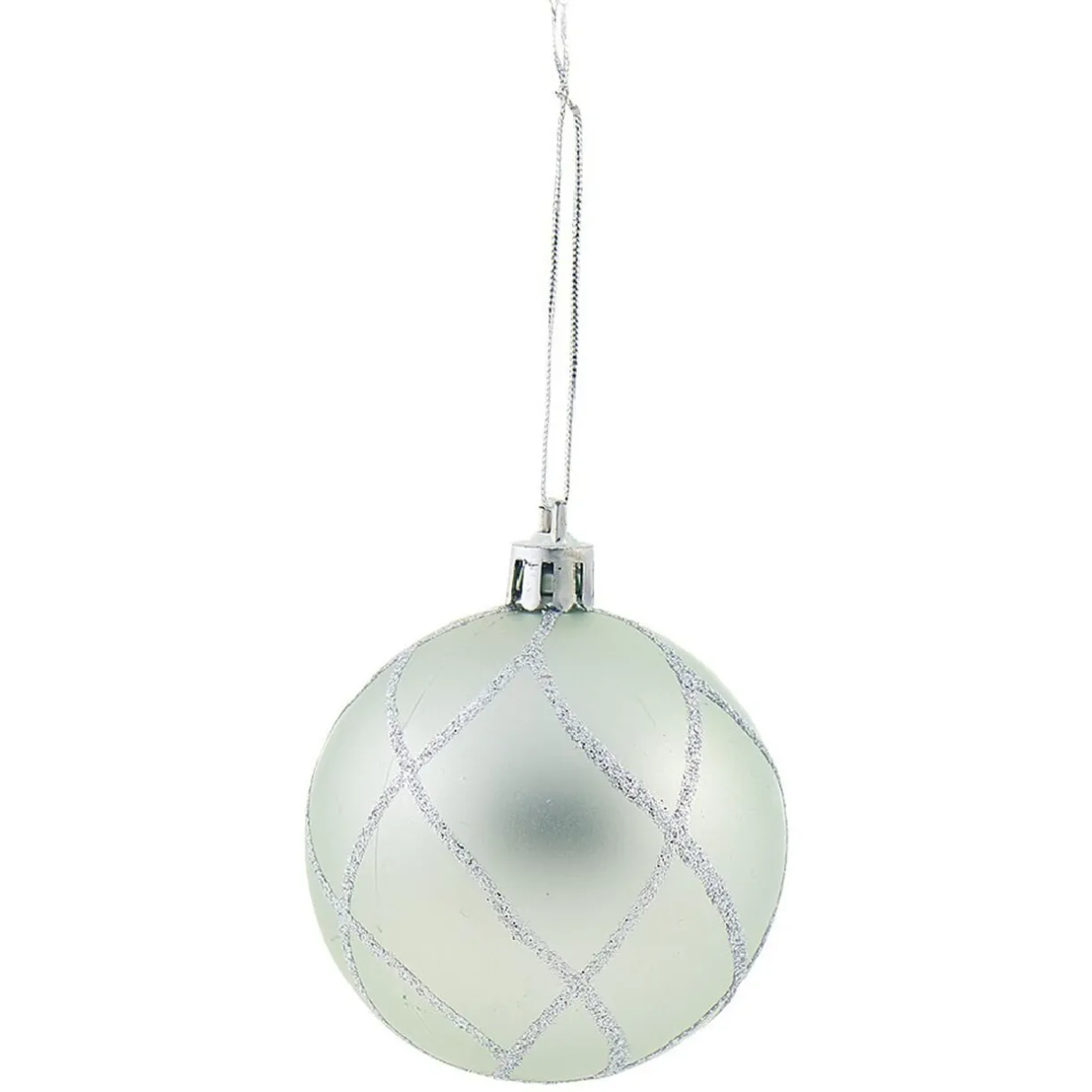 Lot de 6 boules de Noël au design original pailleté de couleur verte et argentée.