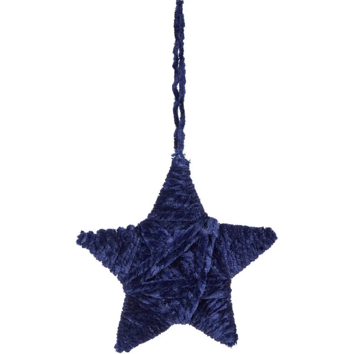 Étoile de Noël en laine bleue à mettre dans votre sapin.