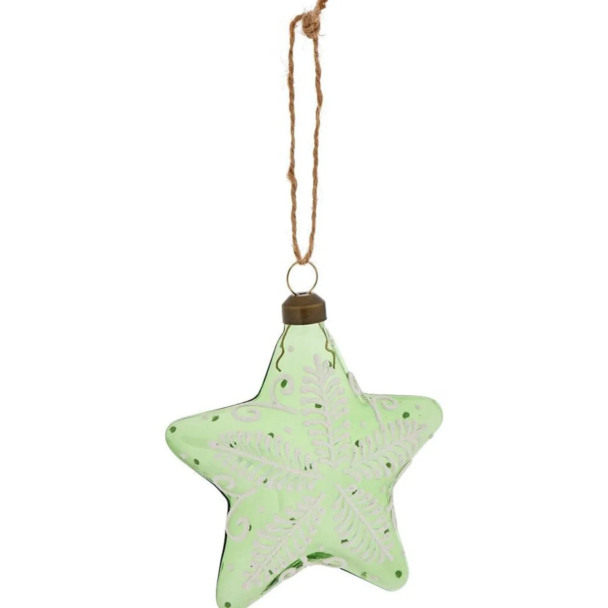 Gifi Étoile en verre à suspendre vert et blanc design artisanal H10,5cm^ Décoration Sapin