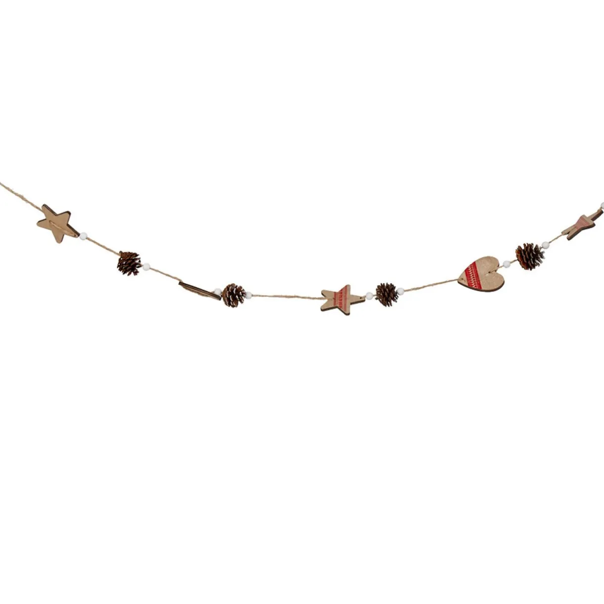 Gifi Guirlande coeurs pommes de pin beige rouge L. 1,9 m^ Décoration Sapin