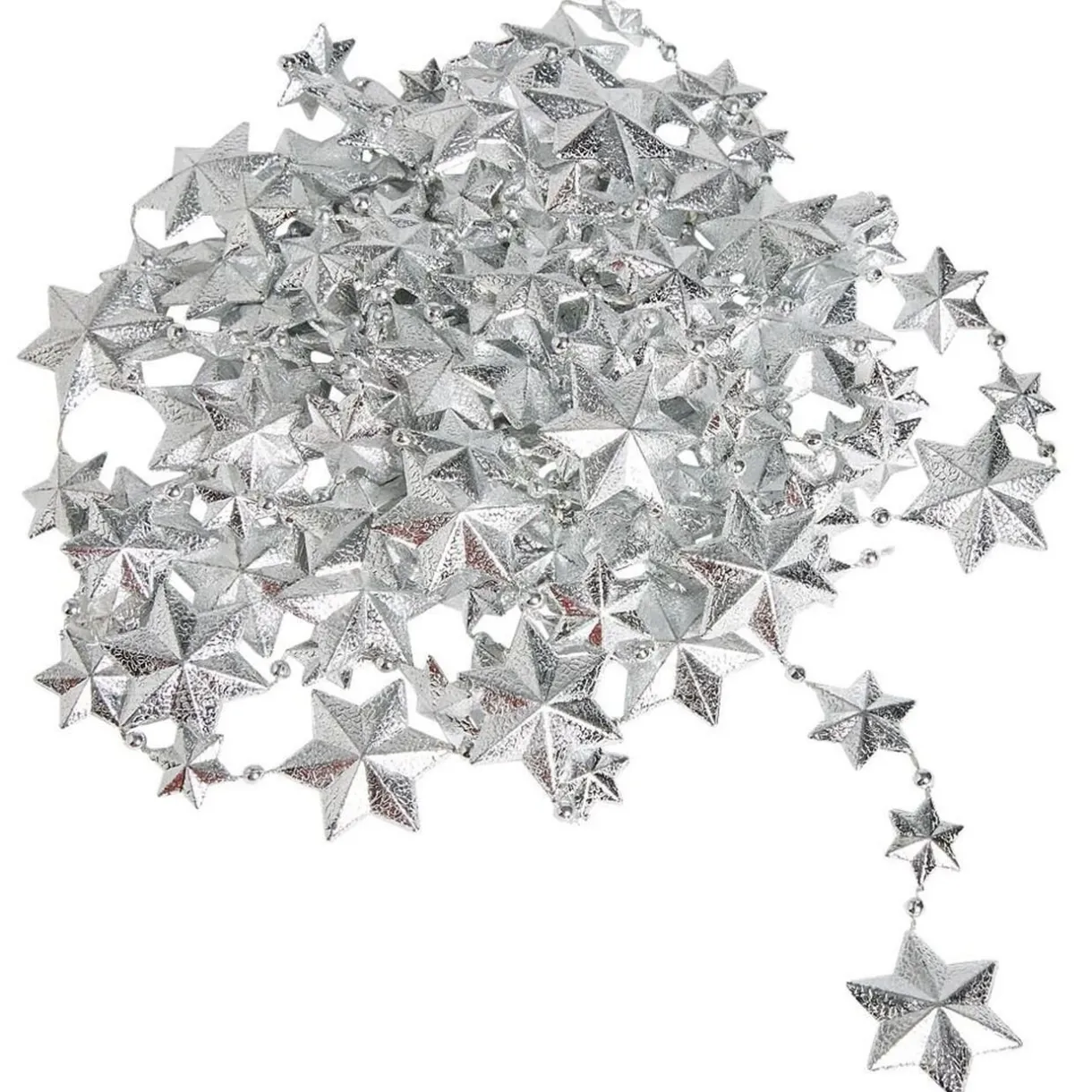 Apportez une touche chic à votre sapin de Noël ou à votre décoration de table avec cette guirlande d’étoiles argentées.