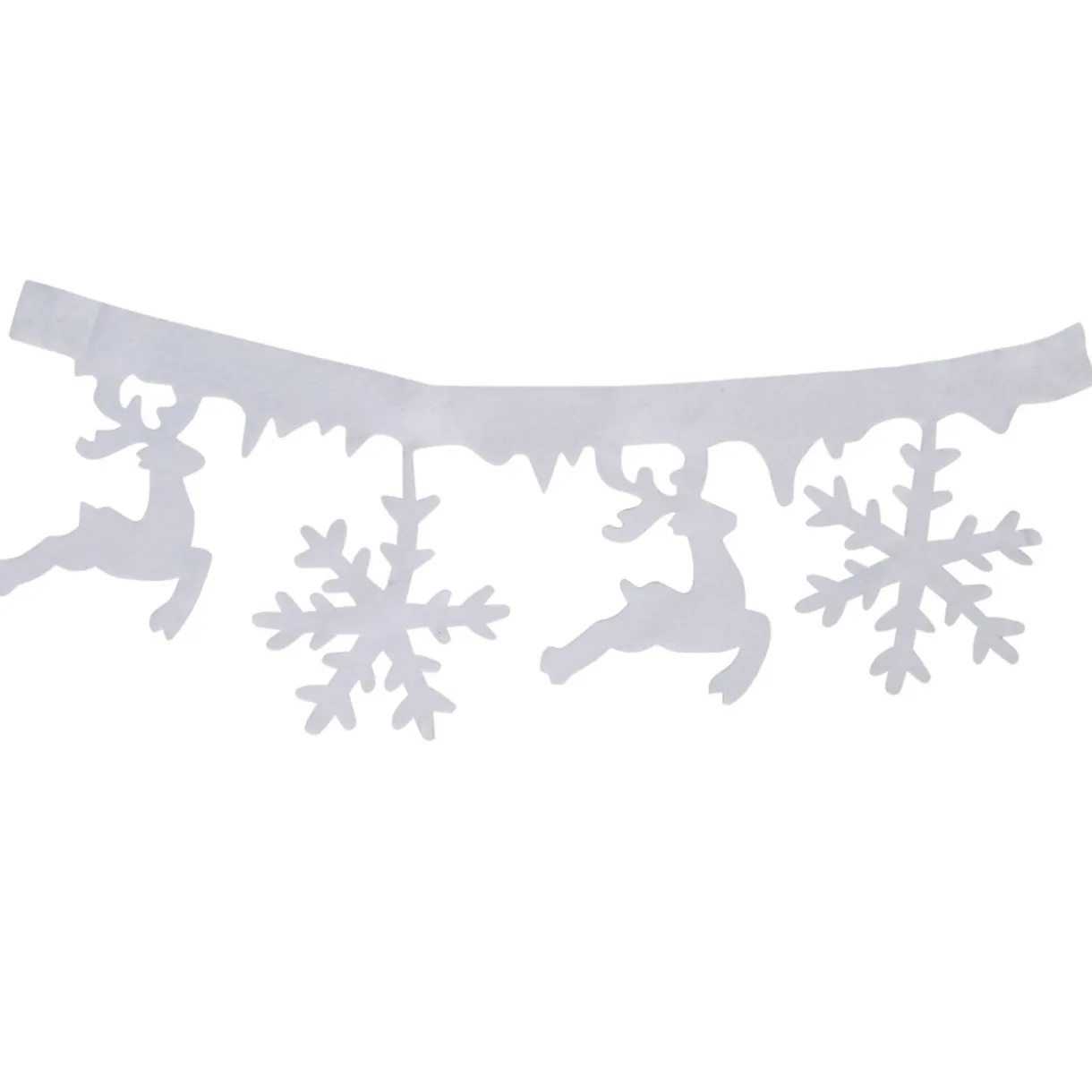 Guirlande en feutrine blanche motif rennes et flocons.