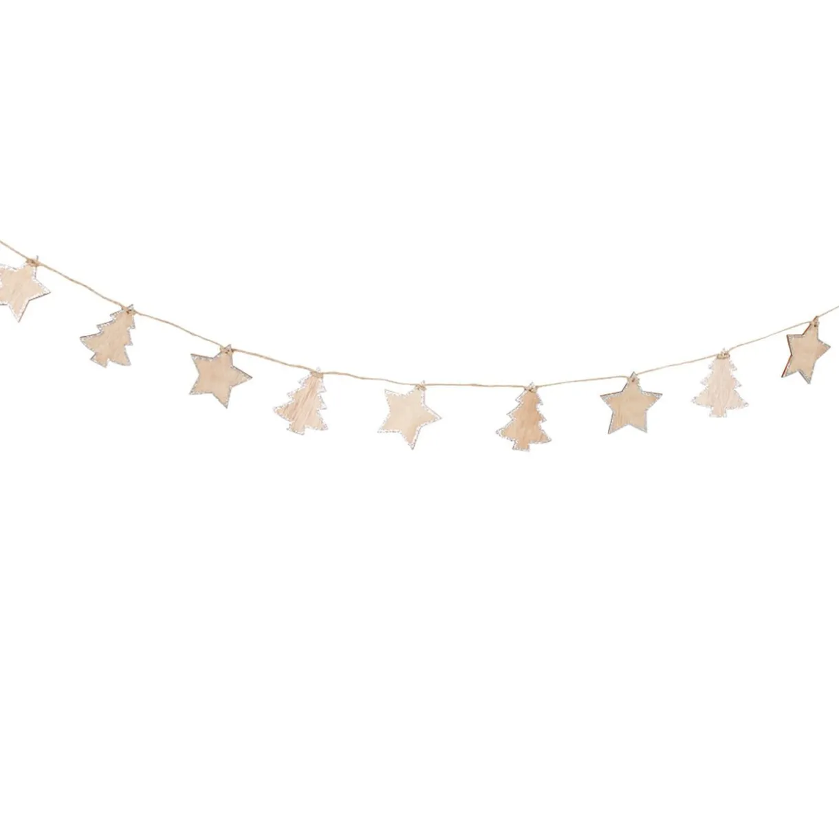 Cette guirlande de sapins et d’étoiles en bois naturel est idéale pour donner une note chaleureuse à la décoration de votre sapinde Noël.