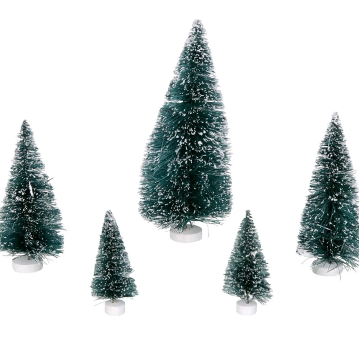 5 sapins de Noël pour crèche, hauteur jusqu’à 16 cm, plastique.