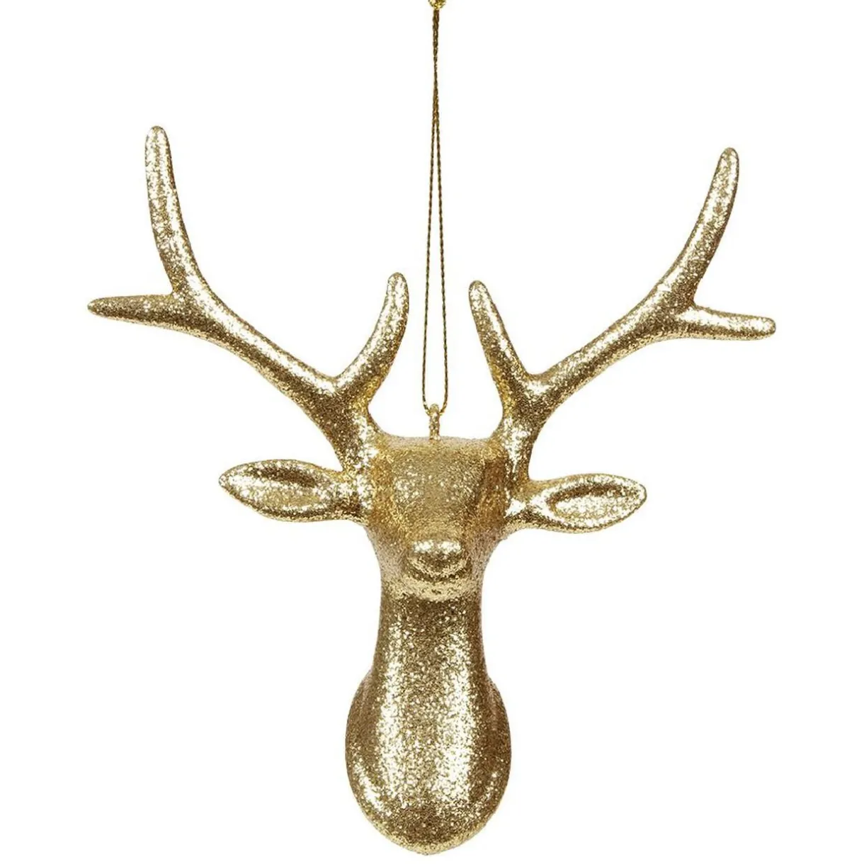 Tête de renne dorée à paillettes à suspendre au sapin.