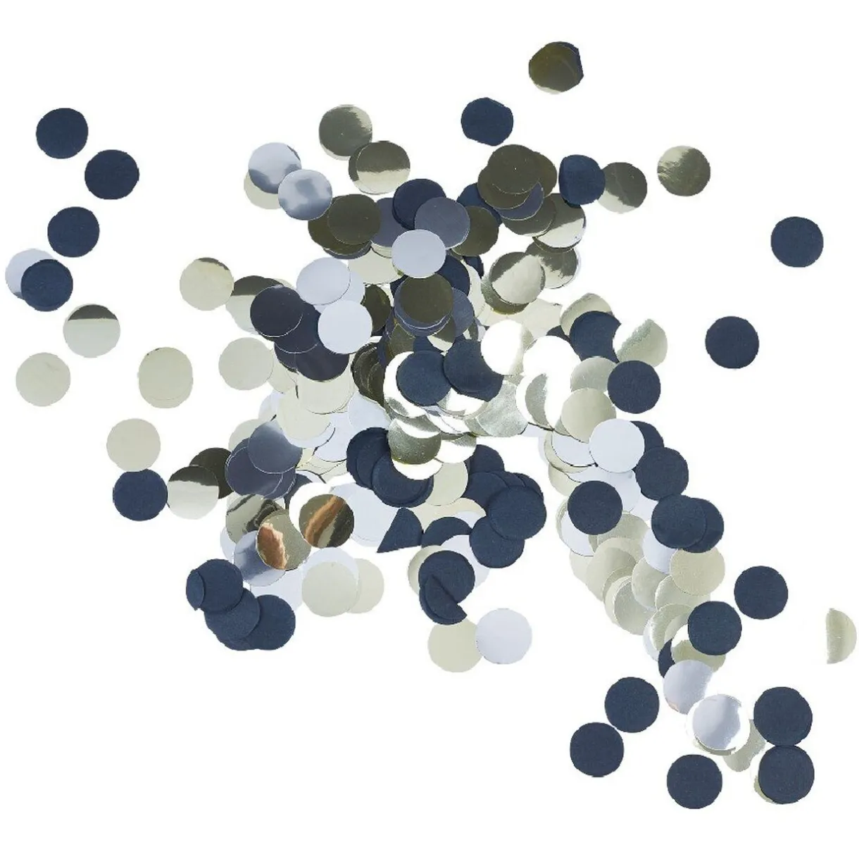Sachet de confettis en aluminium noir, argenté et doré.