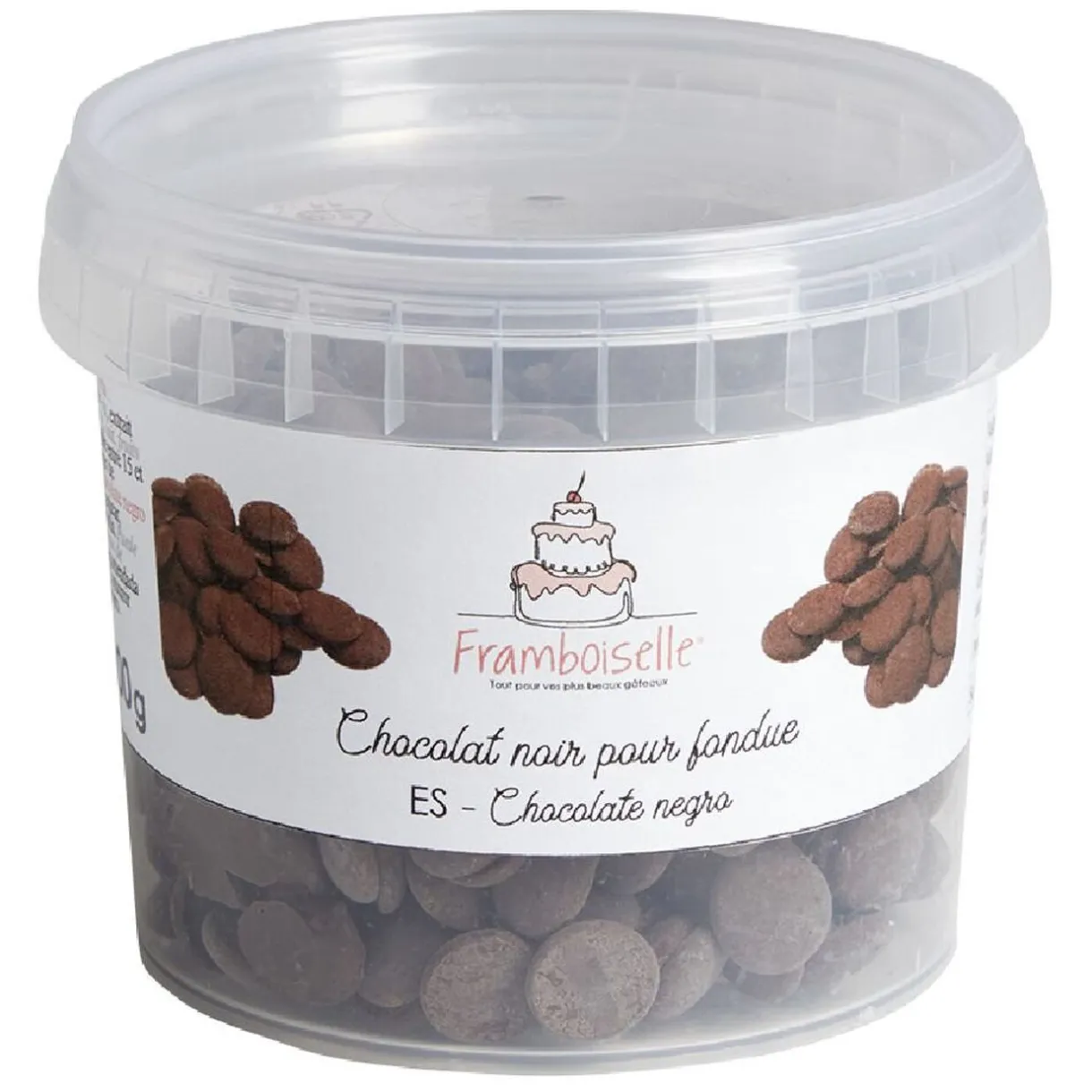 200g de palets de chocolat noir en pot, idéal pour vos desserts à base de fondues, moulages et autres préparations sucrées.