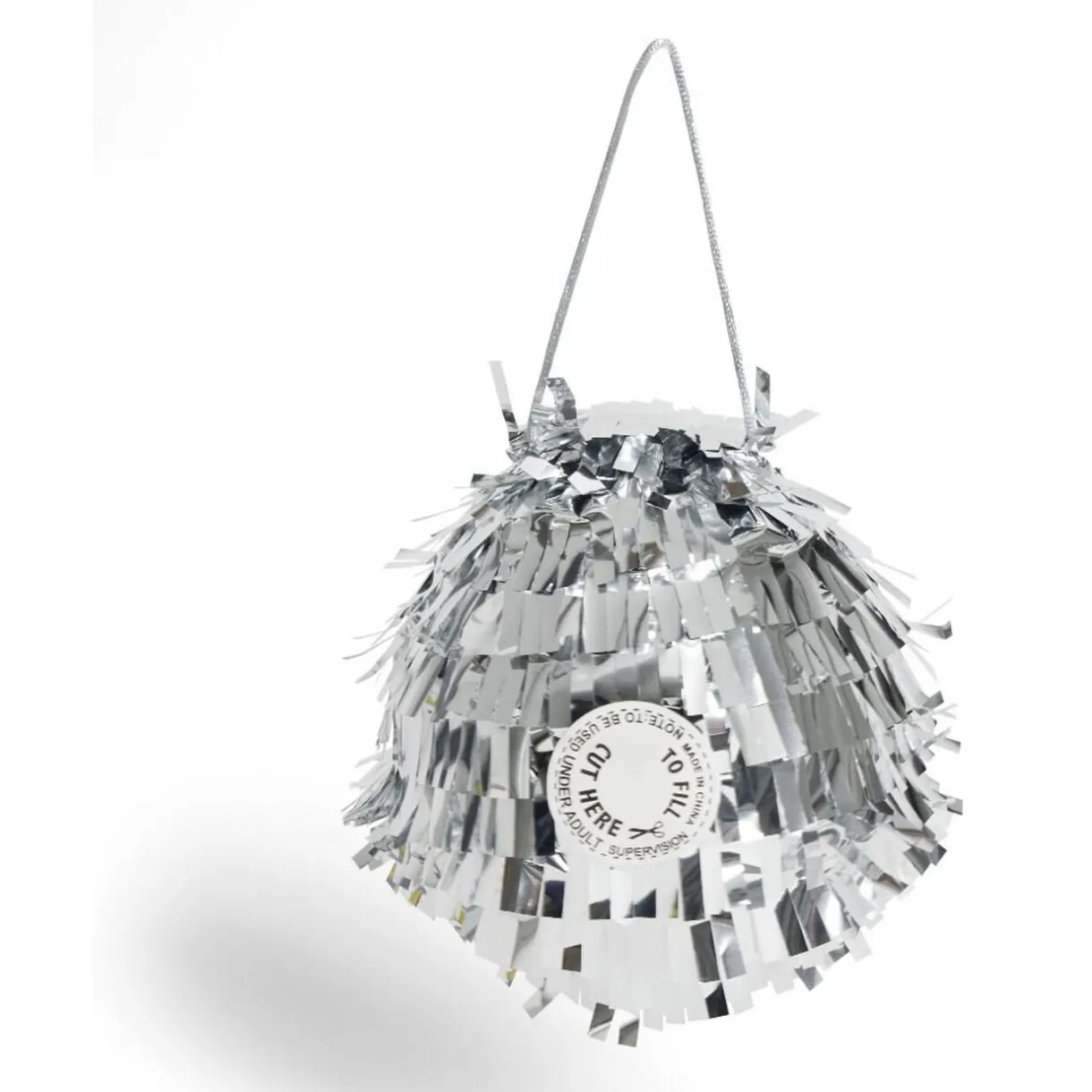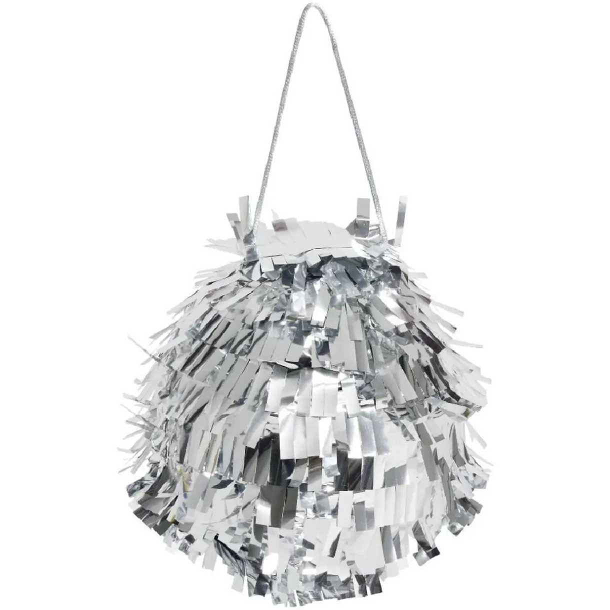 Ajoutez un peu d’ambiance supplémentaire à votre fête grâce à cette piñata à l’apparence de boule disco argentée.