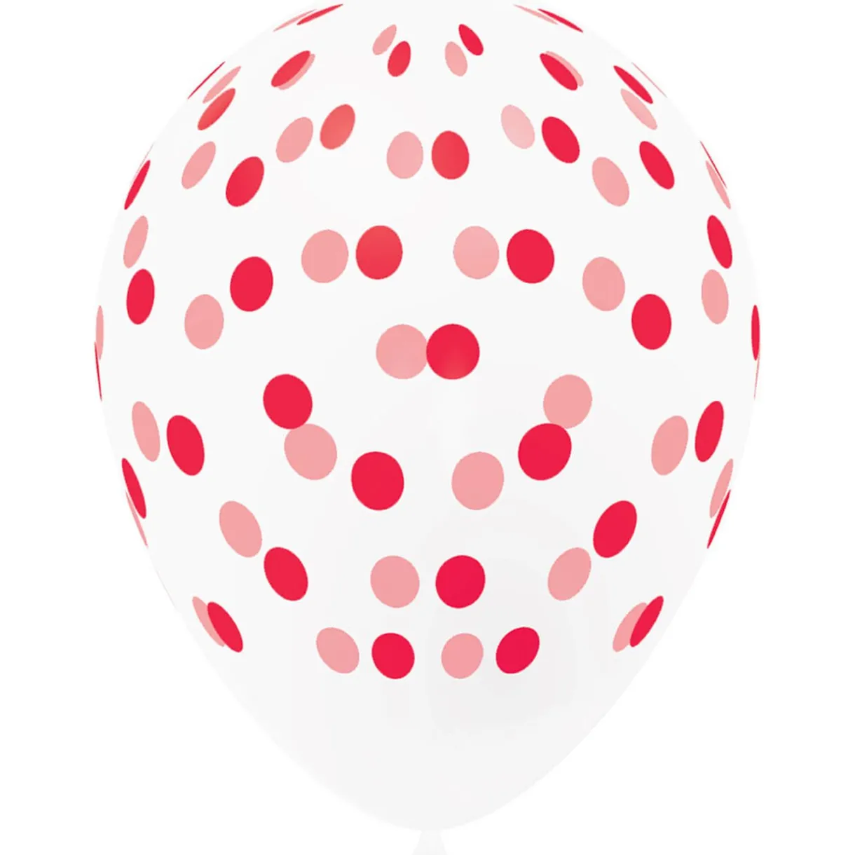 Lot de 8 ballons de baudruche blancs motifs pois rose et rouges. Idéal pour organiser un évènement festif !
