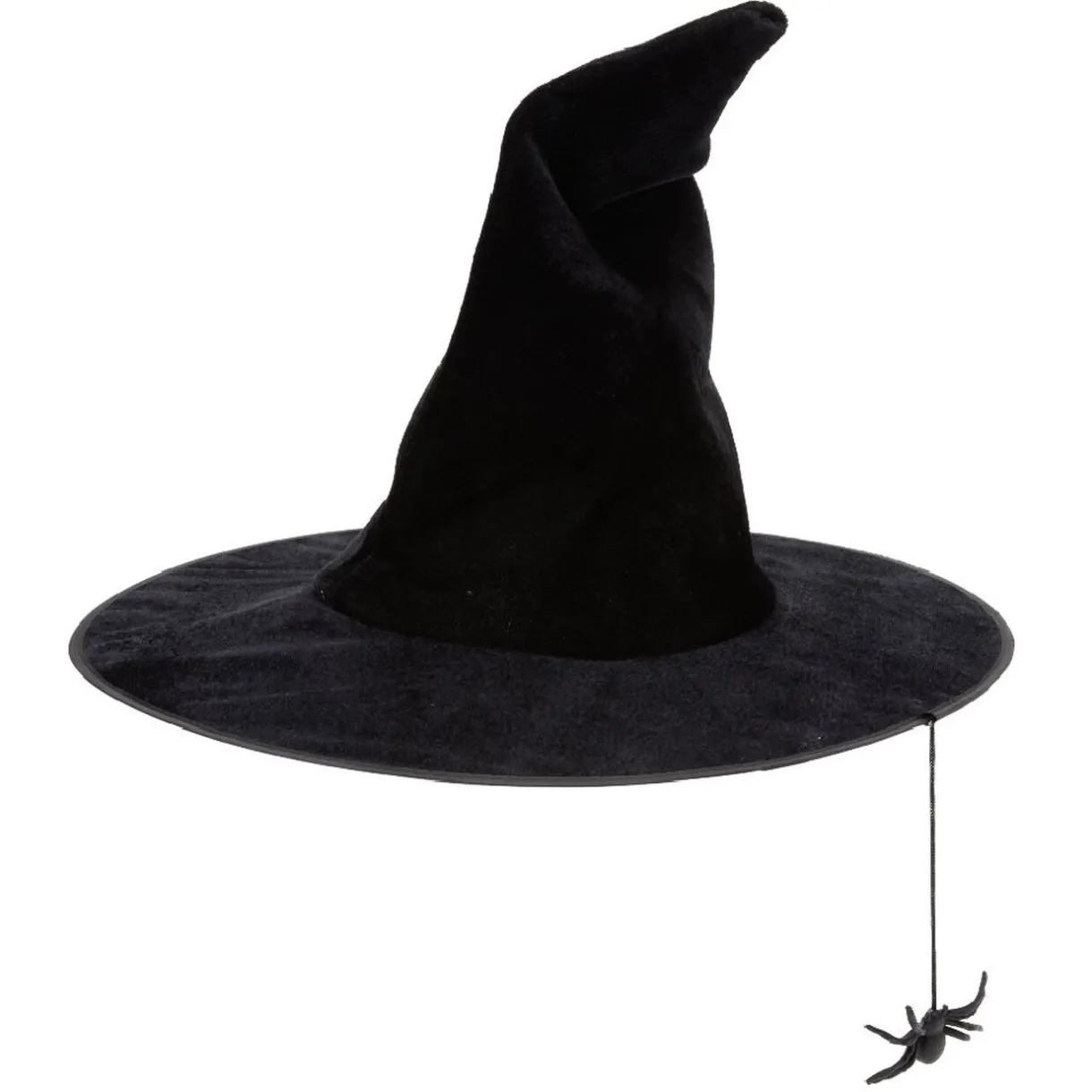 Chapeau de sorcière avec araignée suspendue noire, idéal pour compléter votre déguisement d’Halloween !