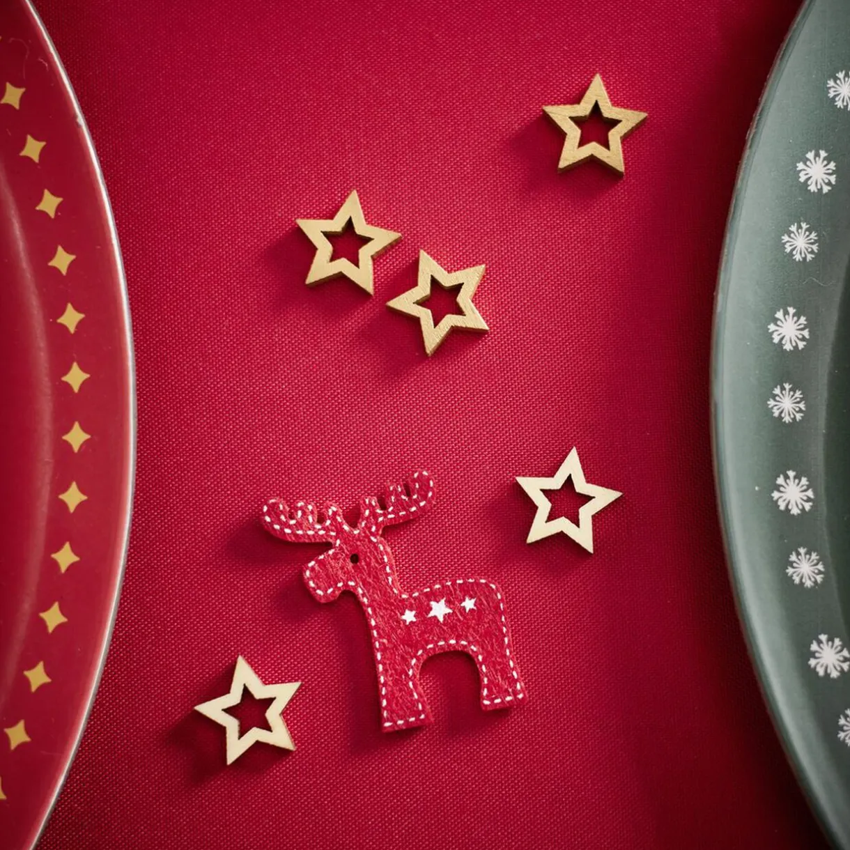 Apportez une touche festive et chaleureuse à vos repas avec ce lot de 6 décorations de table en forme de renne en feutrine rouge.