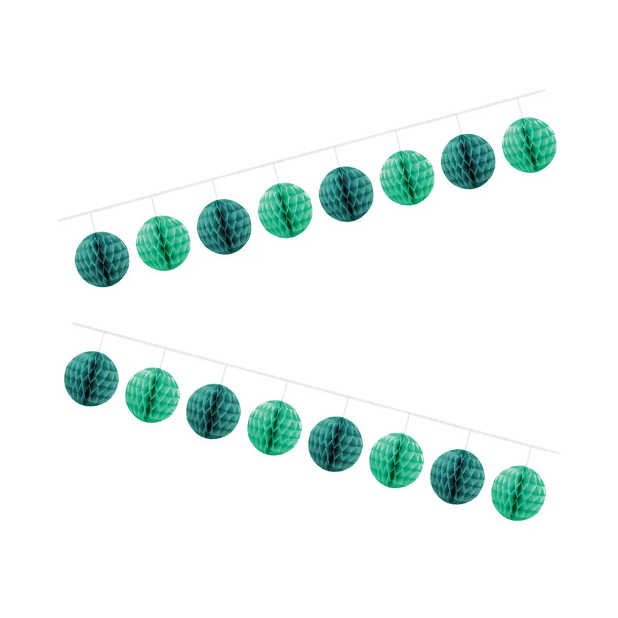 4 mètres de guirlande en papier composée de boules vertes de 10 cm de diamètre.