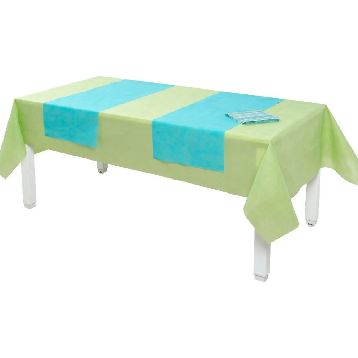 Ce produit existe en 3 coloris, coloris aléatoire selon disponibilité en magasin.- Couleur : Vert,Rose,Rouge- Dimensions Nappe : L140xH240 cm- Dimensions 2 Chemins de table : L120xH40 cm- Dimensions Serviettes X10 : L40xH40 cm- Matière(s) : Papier