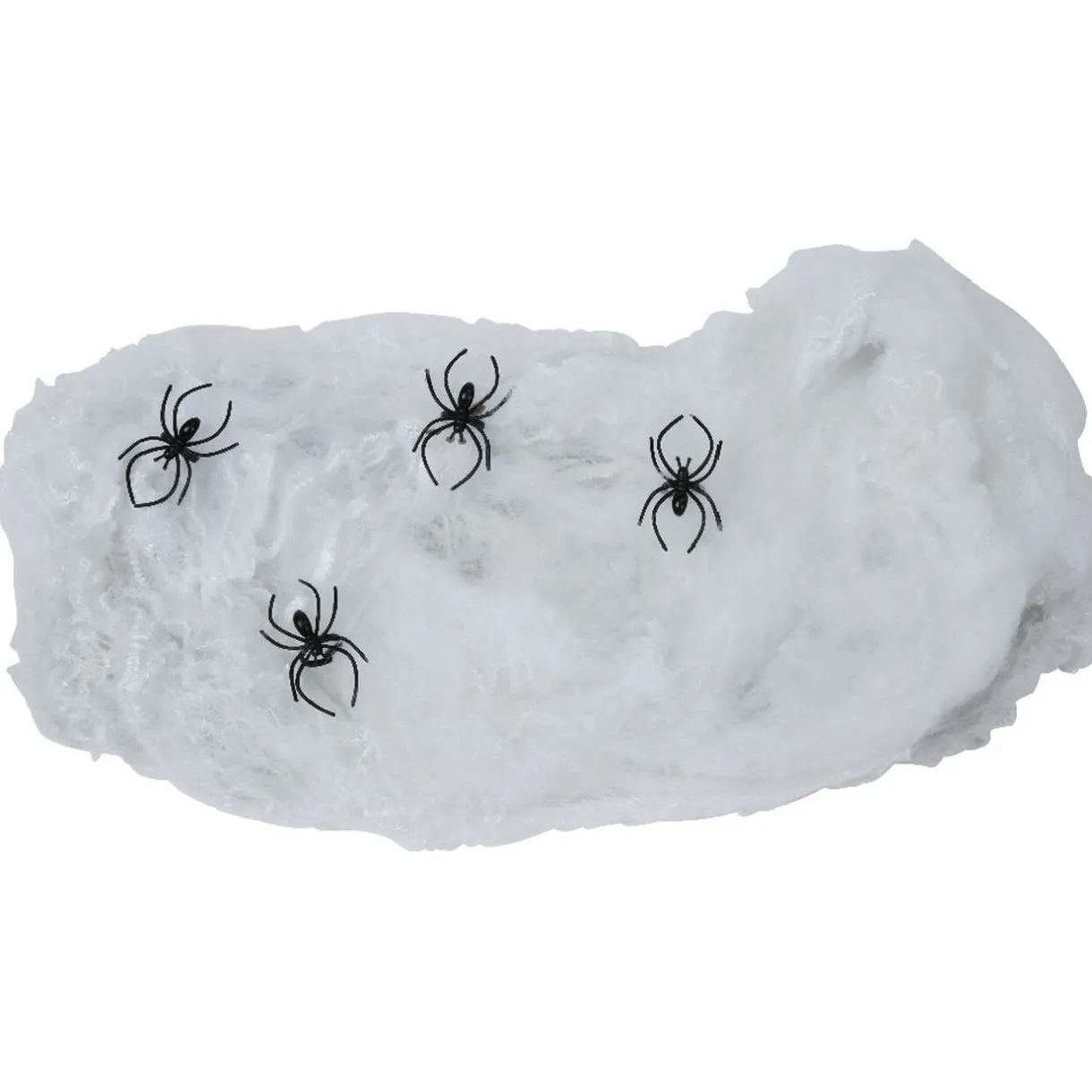 Fêtez Halloween avec ces 4 araignées noires et leur toile blanche, idéal pour la décoration de votre soirée.